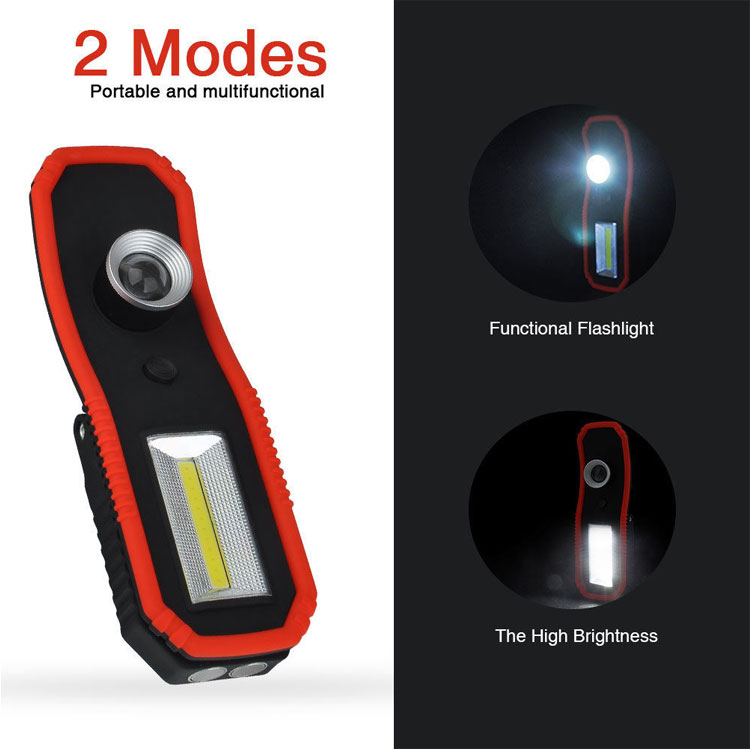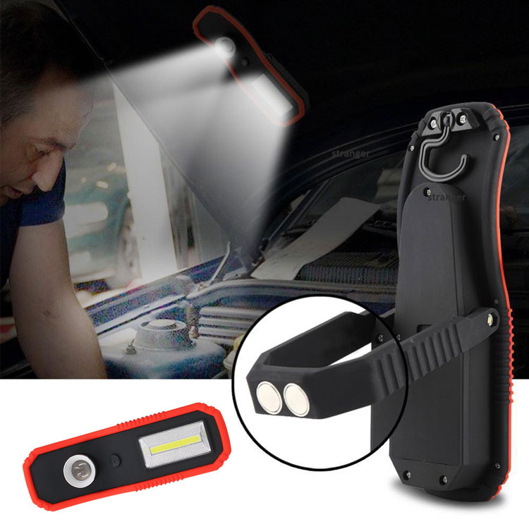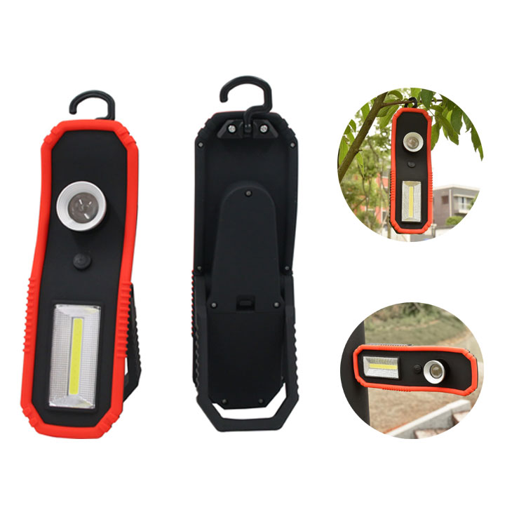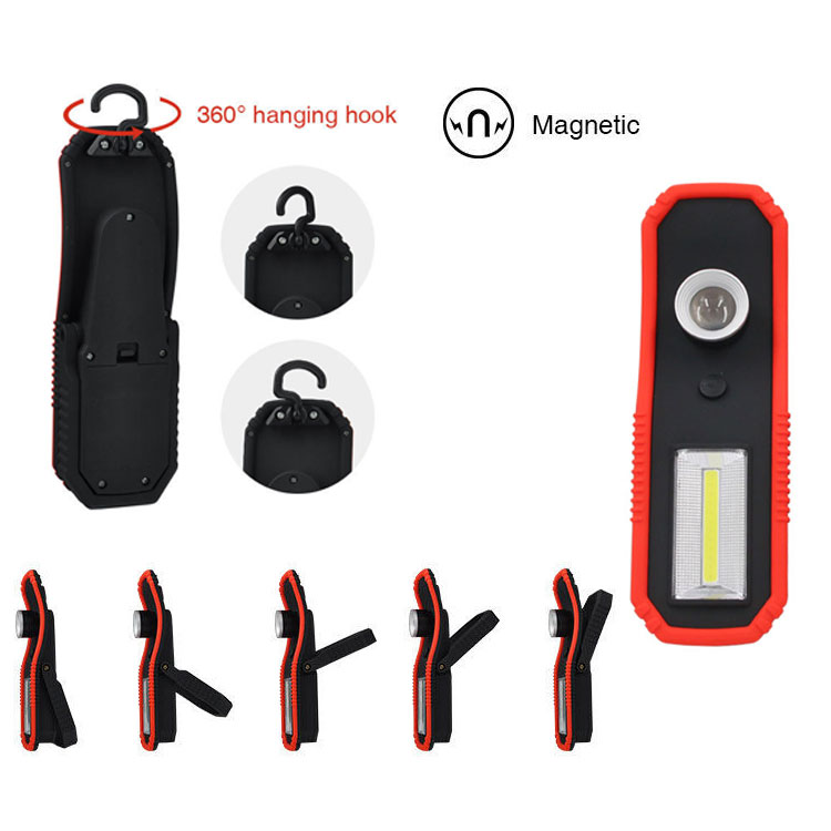 3W COB+3W LED Working lamp Light source: 3W COB+ 3W LED Brightness: 120LM for led & 250LM for cob Material: ABS+PC Battery: 3xAA battery Lighting mode: led- off- cob- off With hanging hook & strong magnet