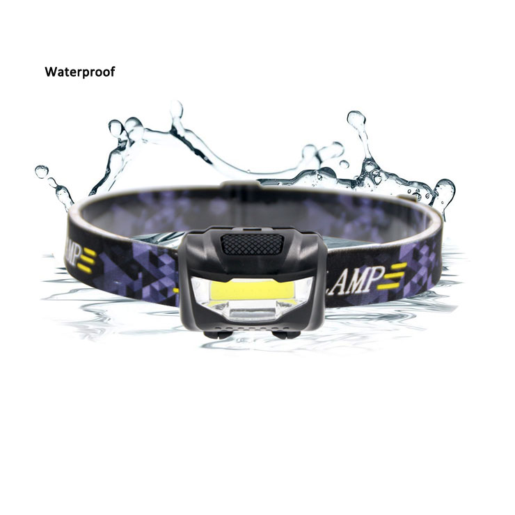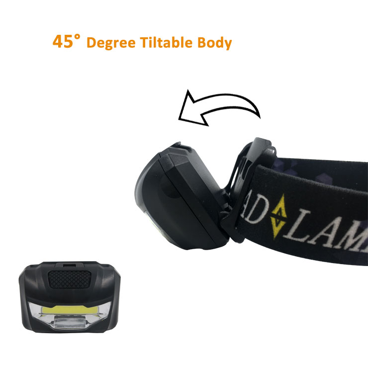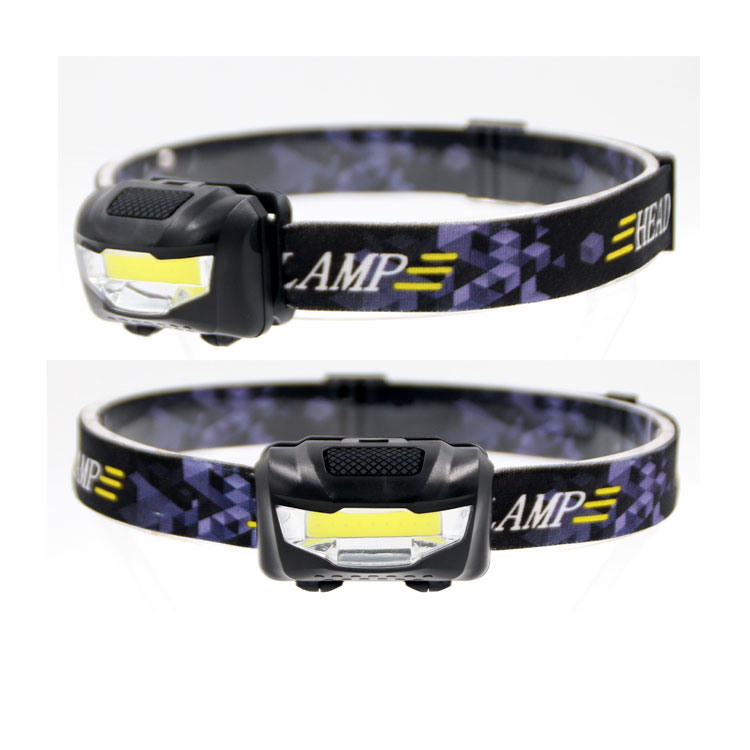 3W COB Head Lamp Light source: 3W COB Brightness: 100 lumens Material: ABS + PC Battery: 3×AAA batteries Lighting mode: 100% bright- 50% bright- flash- Off Adjustable inclination With elastic head strap