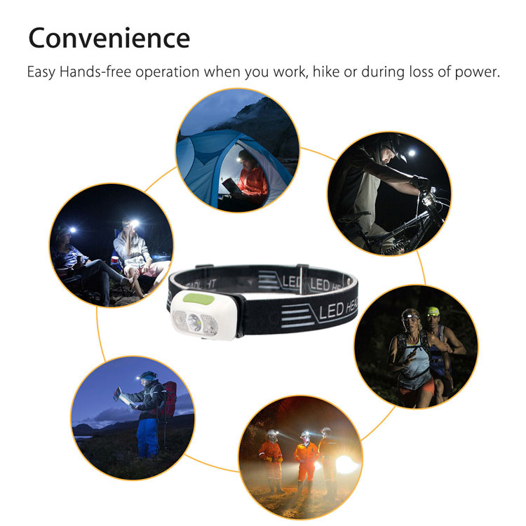 Lighting mode: left switch 100% - 50% - 20% - Off , hold on the button turn to SOS mode; right switch sensor mode
