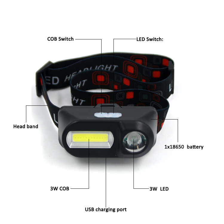Lighting mode: COB Switch: High- Low- Strobe-off