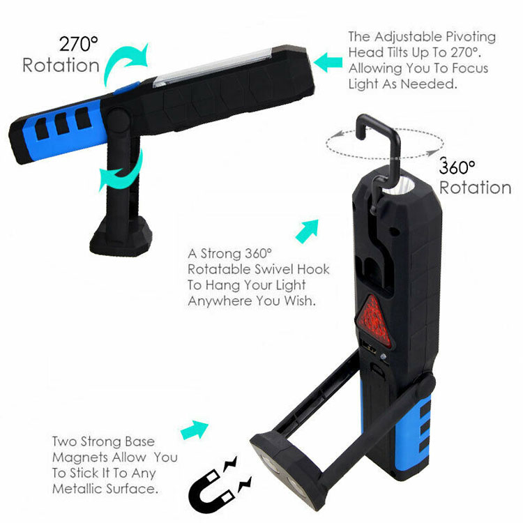 Bulb Type: 3W COB+LED Brightness: 250 LM Material: ABS + PC Battery: 1x18650 Li-ion rechargeable battery Function: COB- LED- Off Accessory: USB Cable