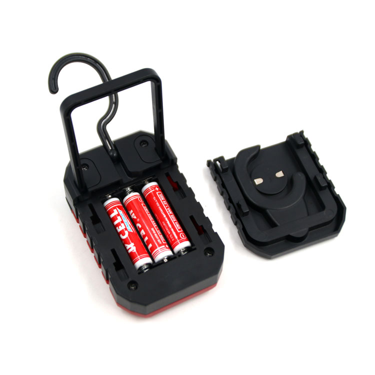 Bulb Type: 3W COB +3SMD Brightness: 210 Lumens for COB, 25Lumens for SMD Material: ABS + PC Battery: 3x AAA batteries Function: COB - SMD- OFF Feature: Hook & Magnet