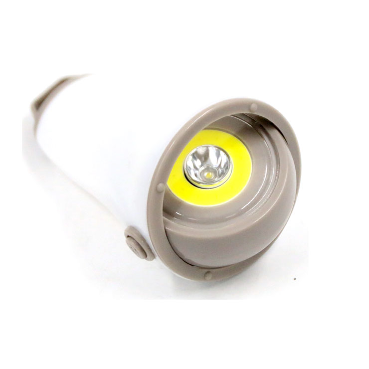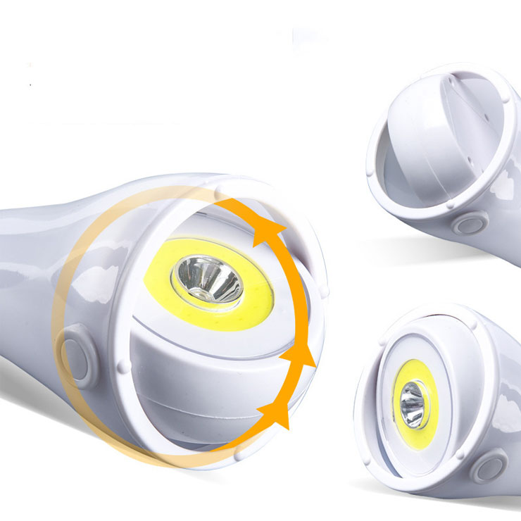 Bulb Type: 3W LED + COB Brightness: 75 LM--LED 105 LM-- COB Material: ABS Battery: 3x AAA batteries(not include) Function:LED- COB- Off Feature:Hook, adjust base with 360° Size:8x7.5x14.5cm Weight:79.7g