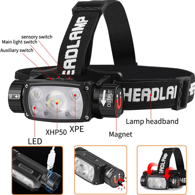 Light source: XHP50 LED+ 2pcs XPE+2 pcs red led